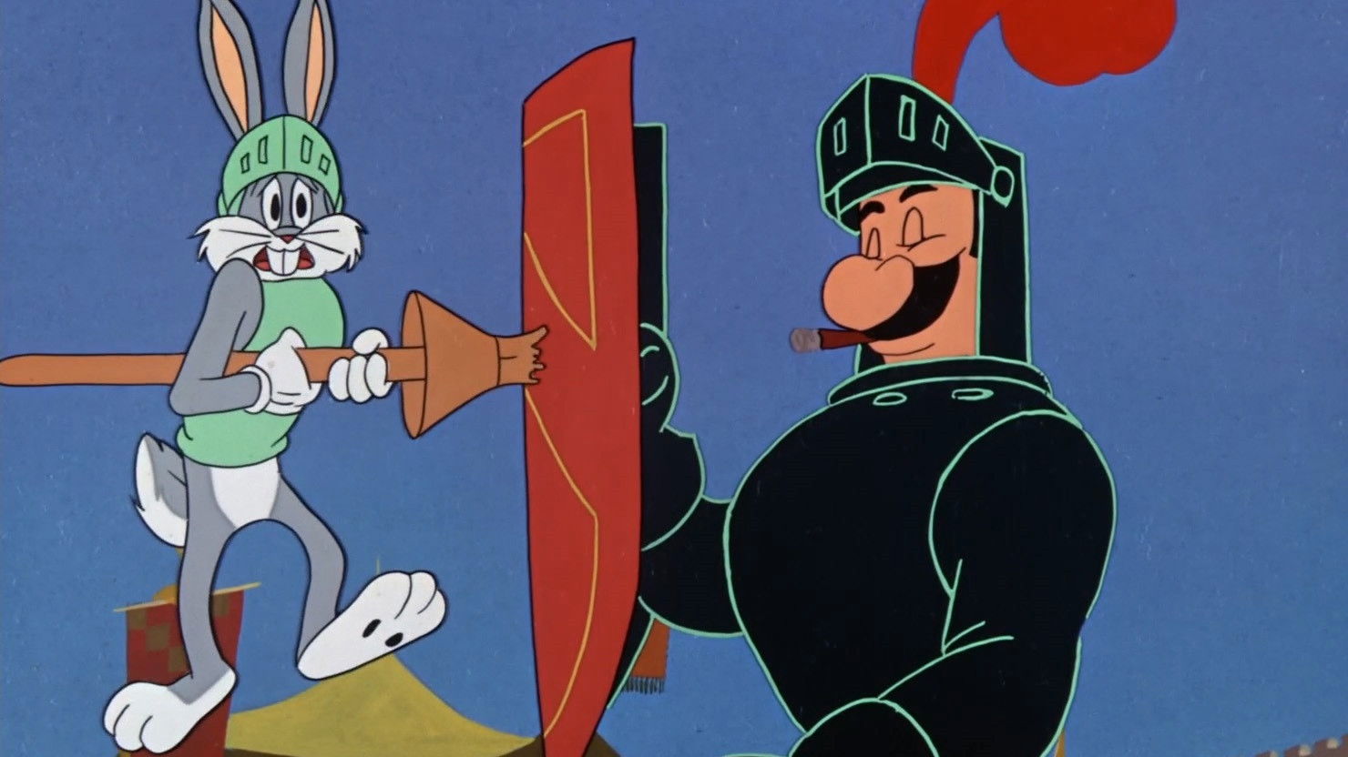 Bugs Bunny doit jouter avec Sir Pantsalot de Drop Seat Manor...