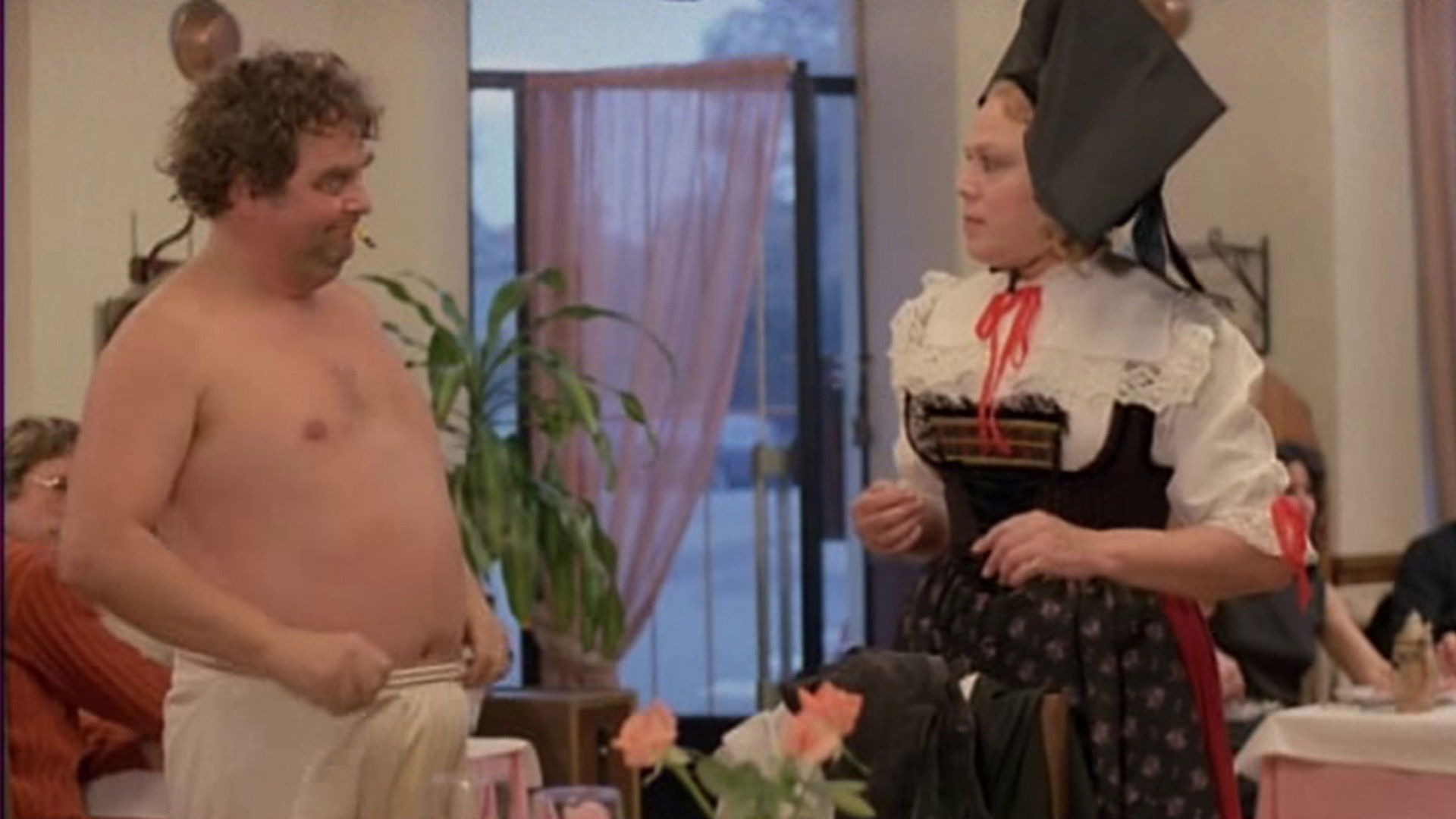 26/06/1986 (FR) - 88 minutesLe personnage principal, nommé uniquement dans le titre, Gros Dégueulasse, est un homme sale, corpulent, mal rasé, répugnant, habillé d'un seul slip kangourou crasseux et surdimensionné, avec une tache jaune devant, une tache marron derrière, les testicules qui dépassent et fumant perpétuellement une cigarette.