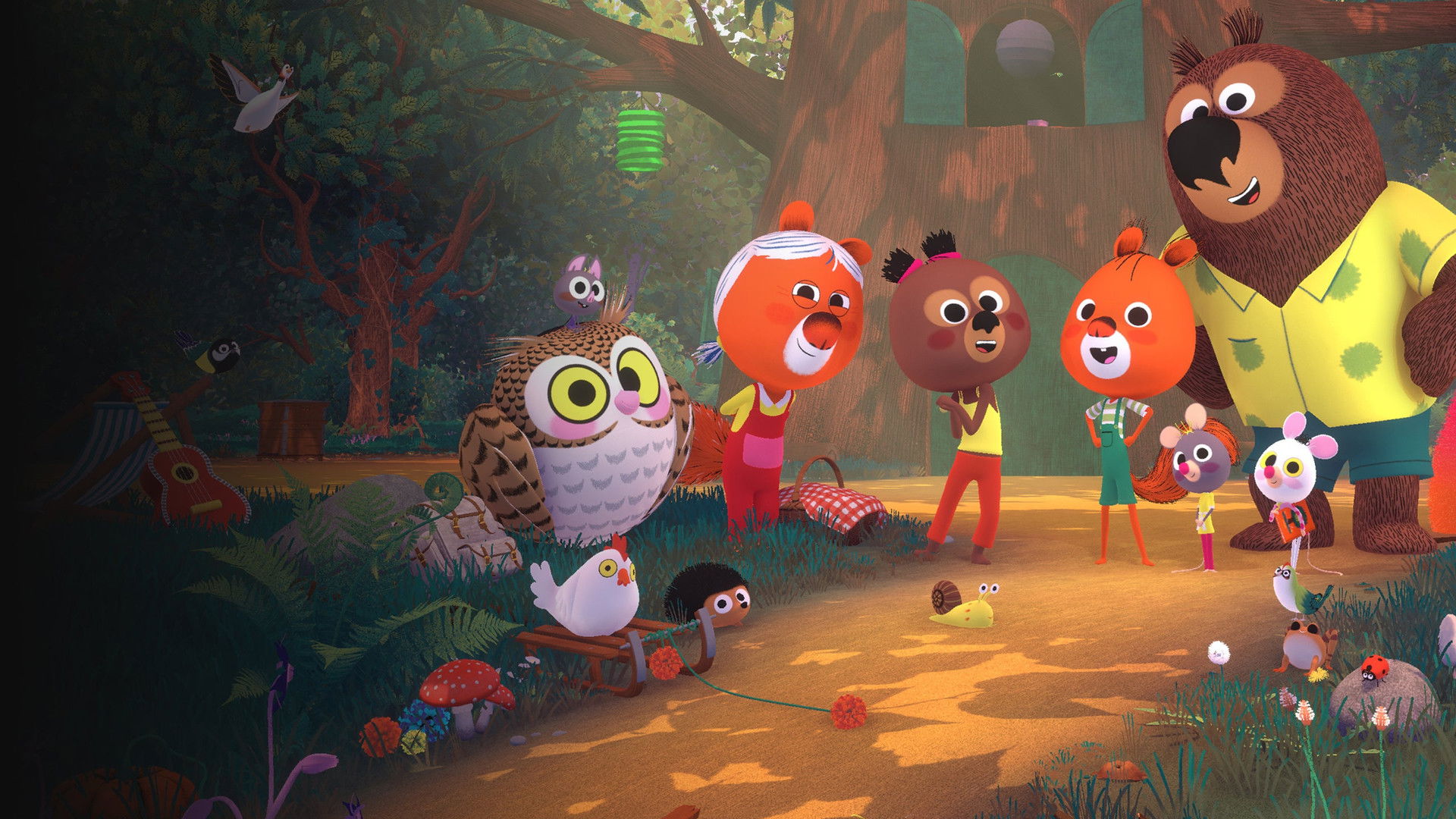 23/09/2022 (FR)Edmond l’écureuil et Lucy l’oursonne sont élevés comme frère et sœur dans un majestueux châtaignier, sorte de cité radieuse de la forêt. Jouer et grandir au cœur de la nature, répondre aux énigmes que celle-ci soulève et vivre des aventures au grand air en compagnie de leur famille et amis : Edouard, papa d'Edmond, Mima la grand-mère, Georges Hibou, les souris Polka et Hortense, Mitzi la petite chauve-souris et la Chose... La belle vie !