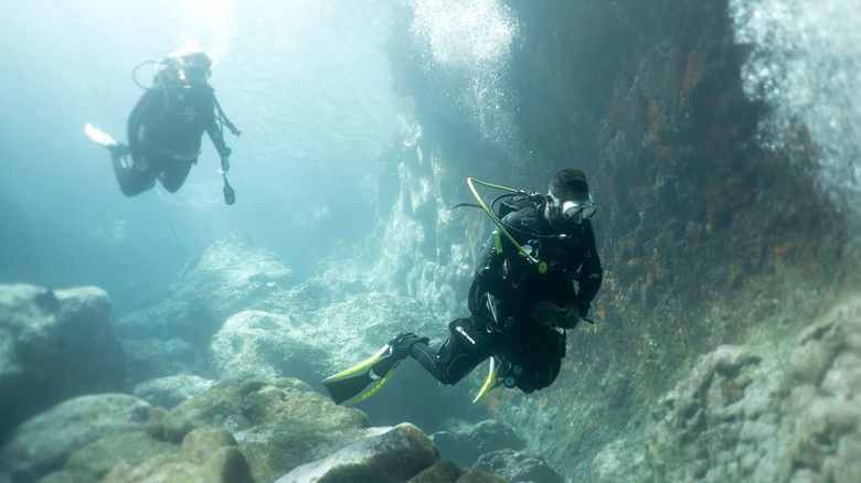 14 septembre 2018Julie Le Breton et Pierre-Yves vont à la rencontre de multiples espèces sous-marines. Mais une plongée avec des requins très curieux marquera leur imaginaire! Romain, le maître-plongeur, leur offre un cours 101 de plongée en grotte car, on le sait, ces plongées prennent souvent des tournures assez surprenantes!